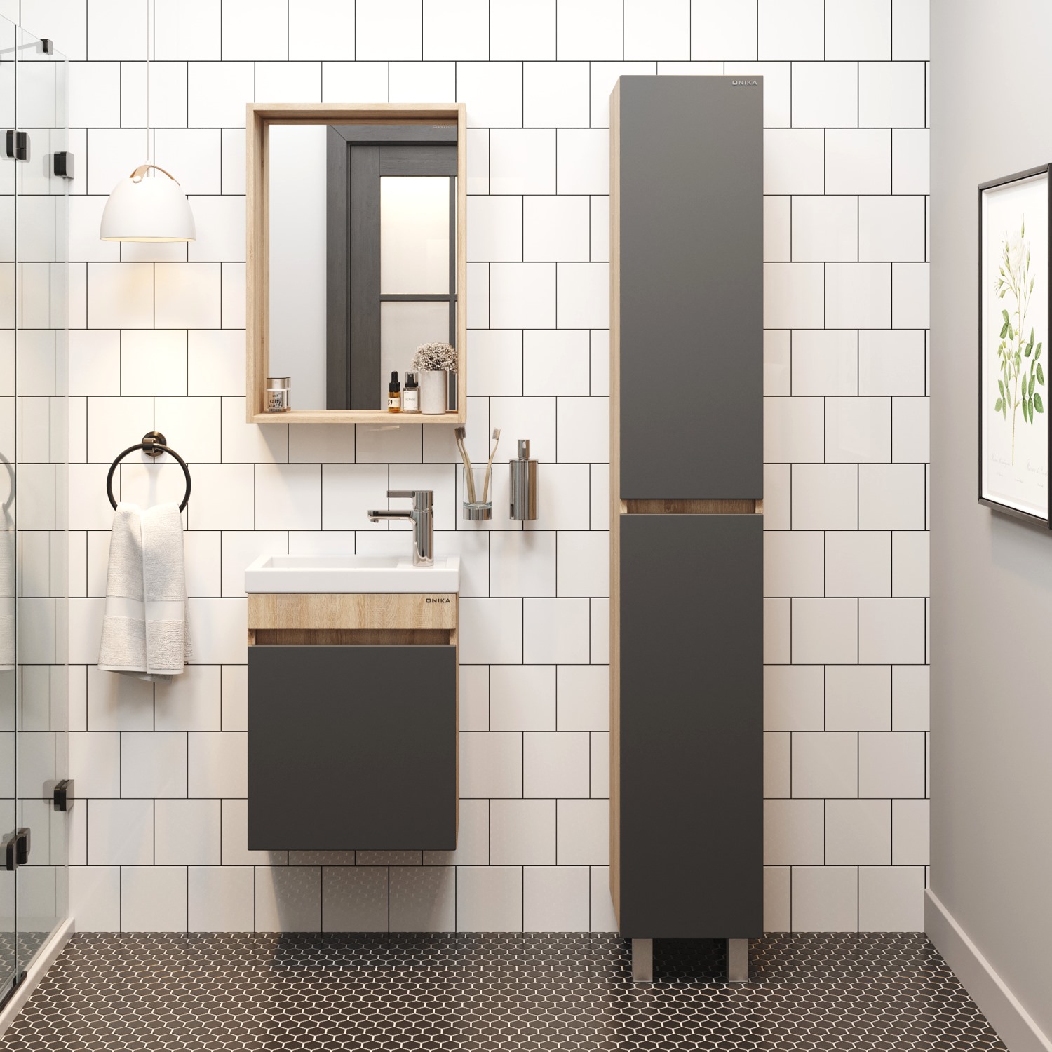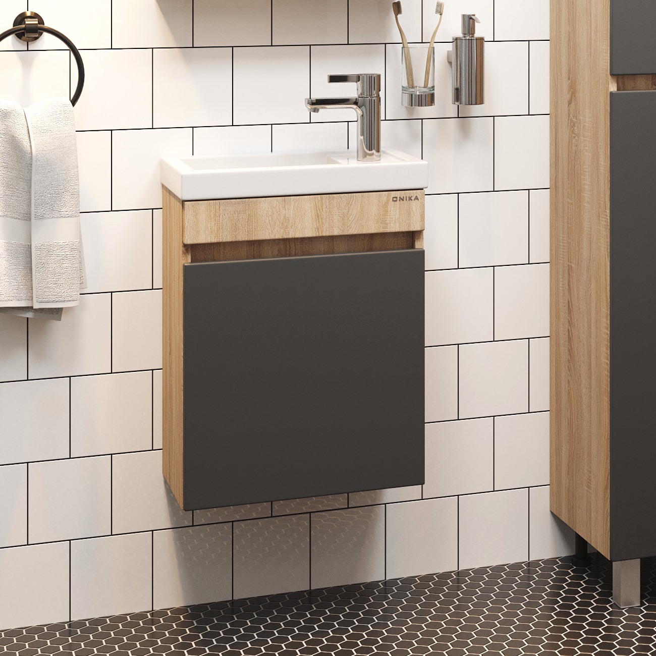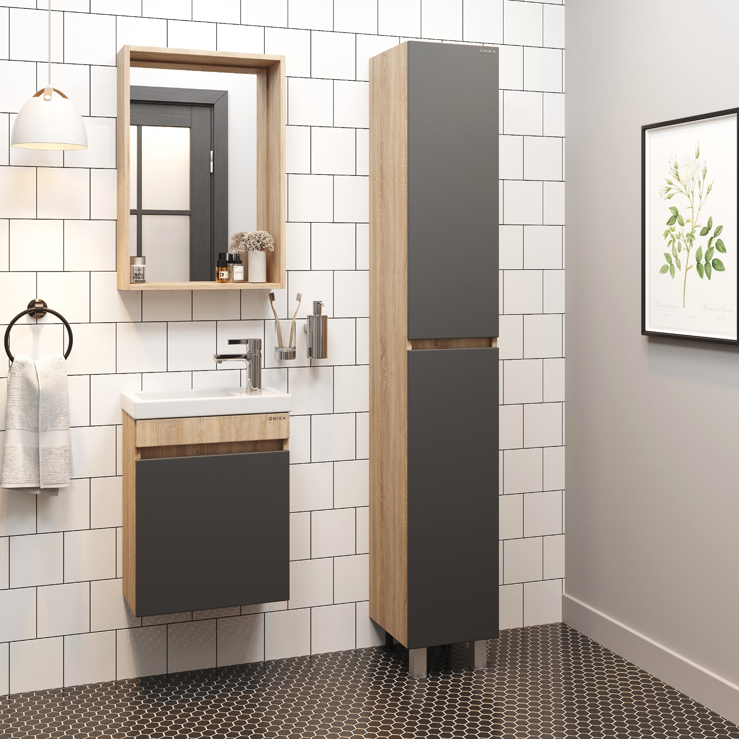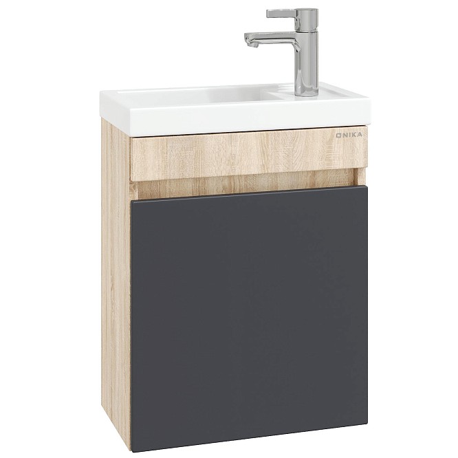 Тумба под раковину подвесная Onika Милтон 45 см (Кirovit Фостер) серый/дуб сонома 104511