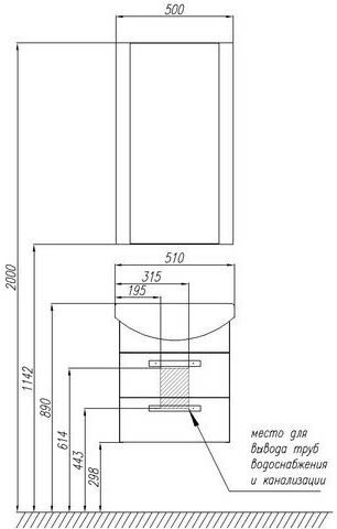 Тумба с раковиной Aquaton Ария 50 см М (Смайл) 1A1400K0AA010