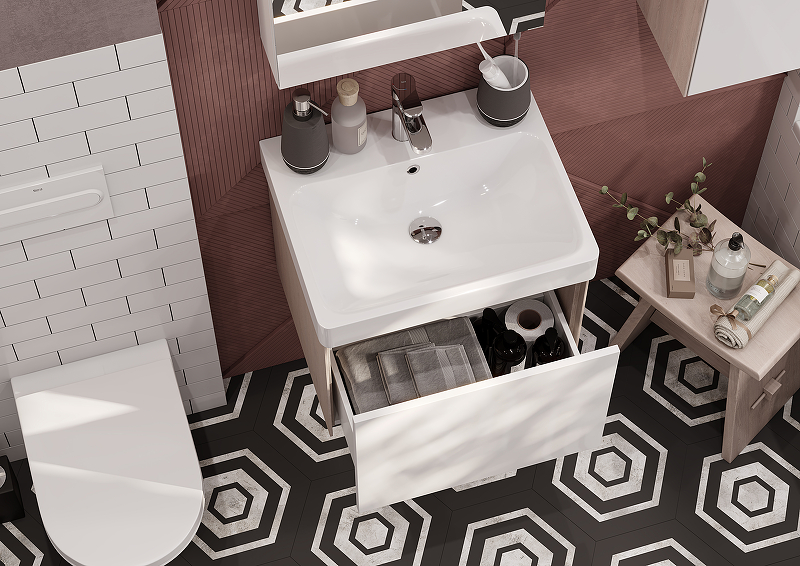 Тумба с раковиной Aquaton Асти 55 см (Адриана) белый/ ясень шимо 1A2631K0AXD70