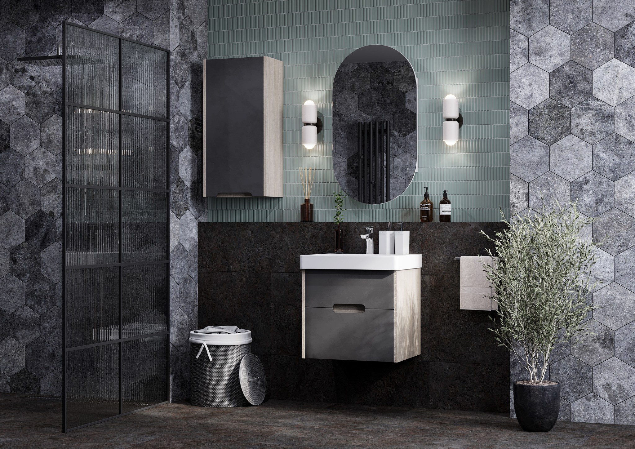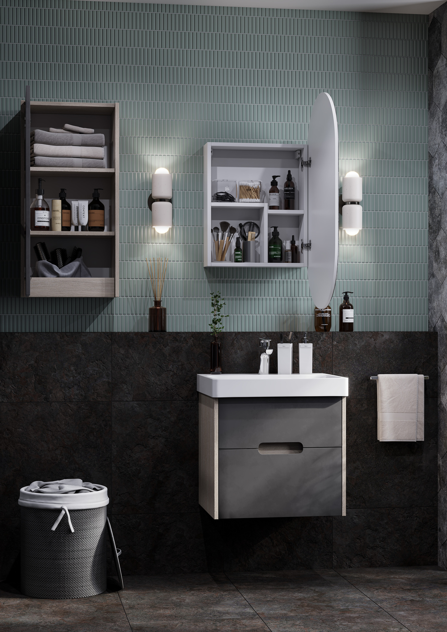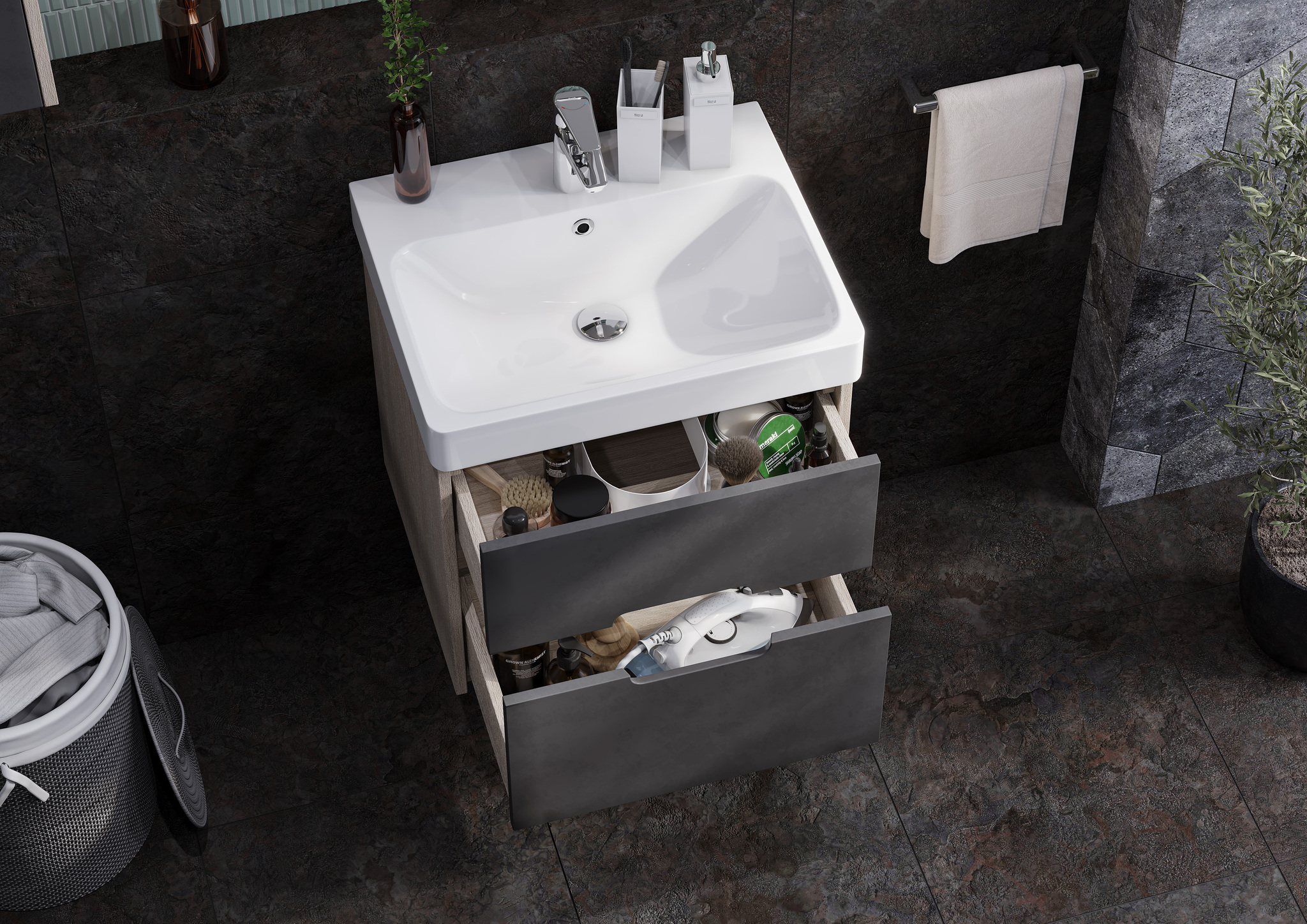 Тумба с раковиной Aquaton Оливия 55 см (Адриана) грей/ дуб ойстер 1A2542K0OLUG0