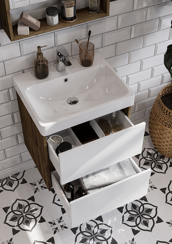 Тумба с раковиной Aquaton Сканди 55 см (Адриана) белый/ дуб рустикальный 1A2517K0SDZ90