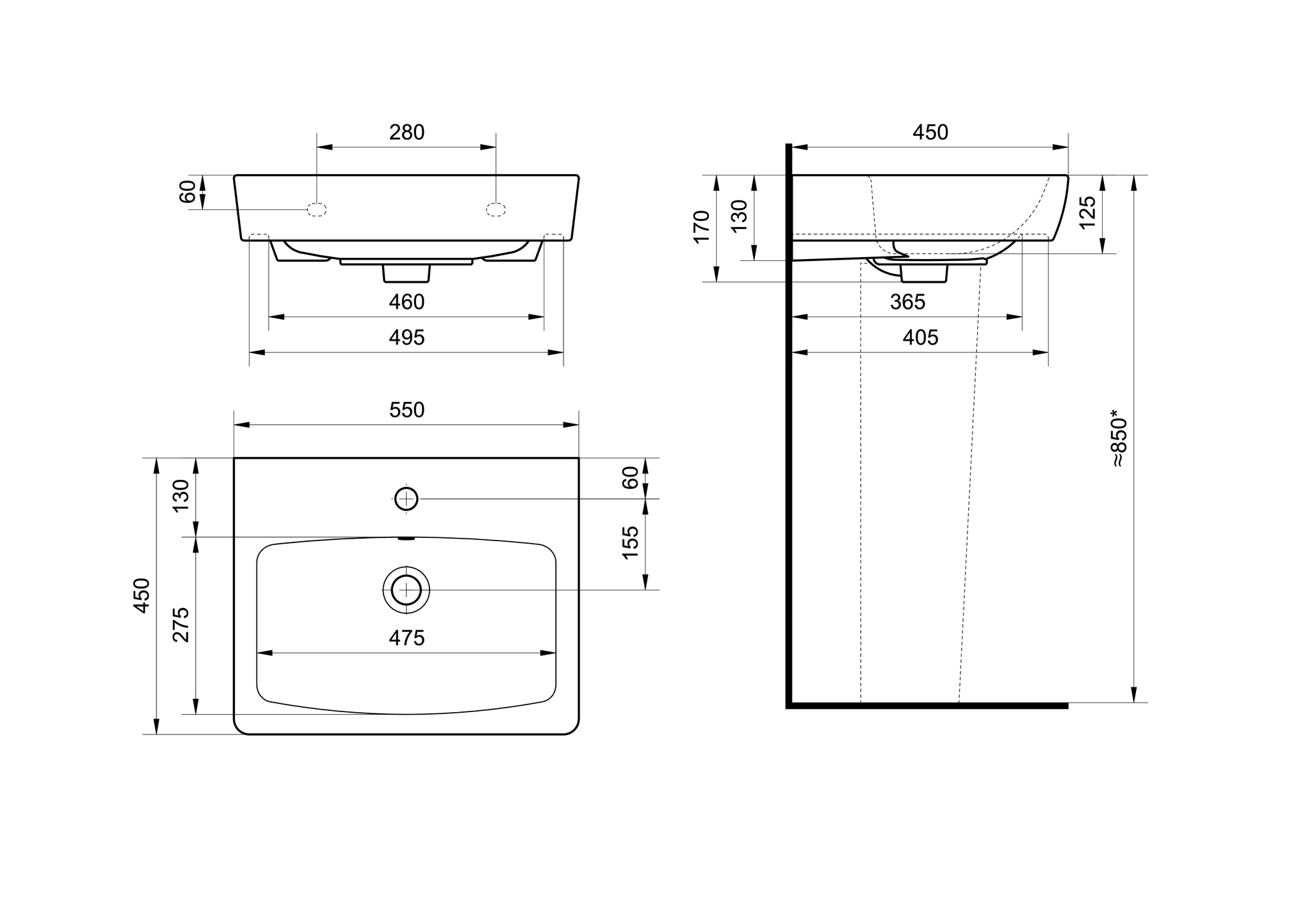Тумба с раковиной Aquaton Скай 55 см (Нео) белый 1A2381K1SY010