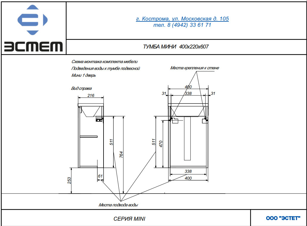 Тумба с раковиной Эстет Mini 40 см ФР-00010477/ ФР-00010478