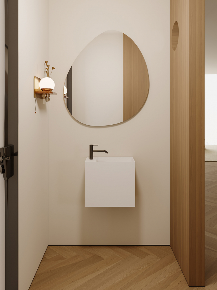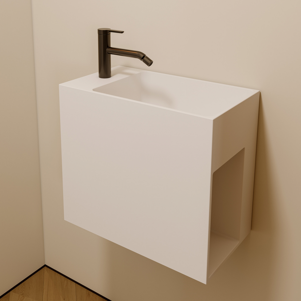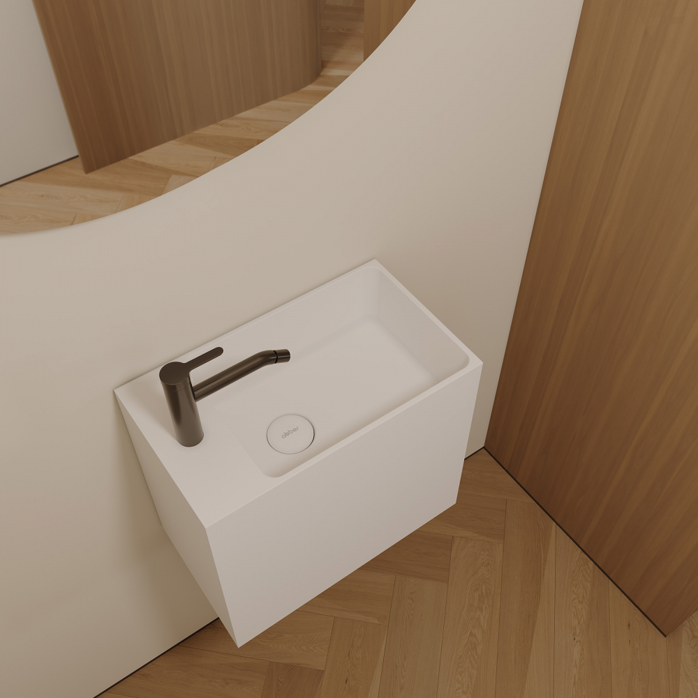 - Тумба с раковиной подвесная ABBER Stein 45 см белый матовый AS2656 L