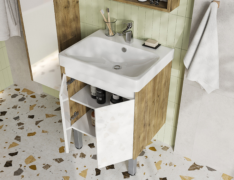 Тумба с раковиной подвесная/ напольная Aquaton Сканди Doors 55 см (Адриана) белый/ дуб рустикальный 1A2788K0SDZ90