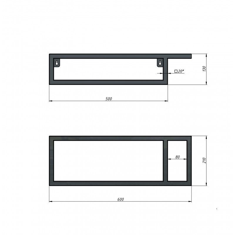 Консоль подвесная Grossman Метрис с правым полотенцедержателем 50 см черный 105002