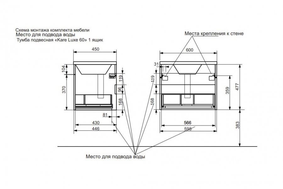 | Раковина | Литьевой мрамор Каре Люкс 60 |
