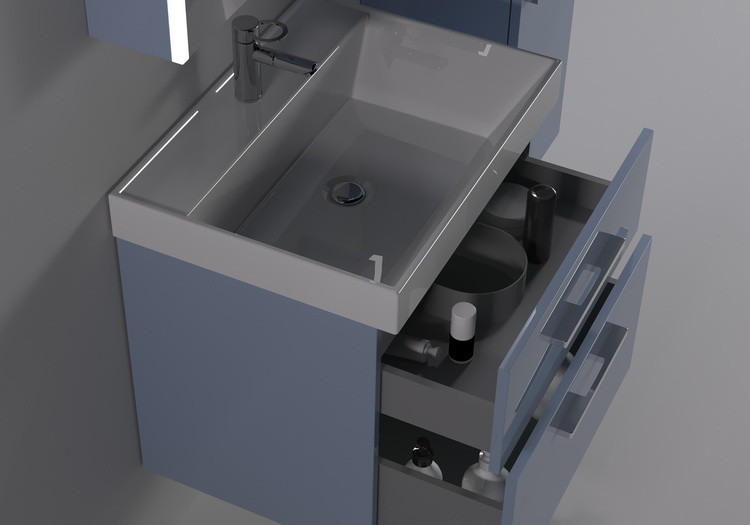 Детали фасадов мебели для ванных комнат производства компании Asrta-Form изготовлены из MDF. Отделка корпусных и фасадных деталей производится лакокрасочными материалами итальянского производства. По Вашему выбору поверхность мебели может быть матовой или глянцевой, а также возможны комбинированные варианты. Раковины изготовлены из литого мрамора и имеют отверстие под смеситель в штатных местах, утвержденных производителем.