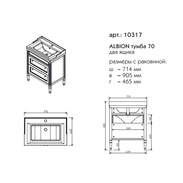 Тумба под раковину Caprigo Albion 70 см ящики массив 10317 цвета разные