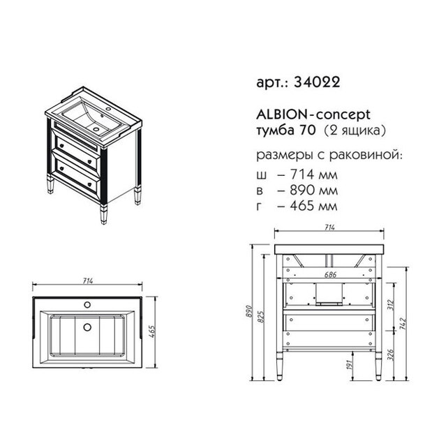 Тумба под раковину Caprigo Albion Concept 70 см 34022 цвета разные