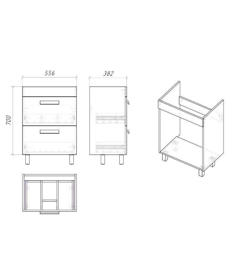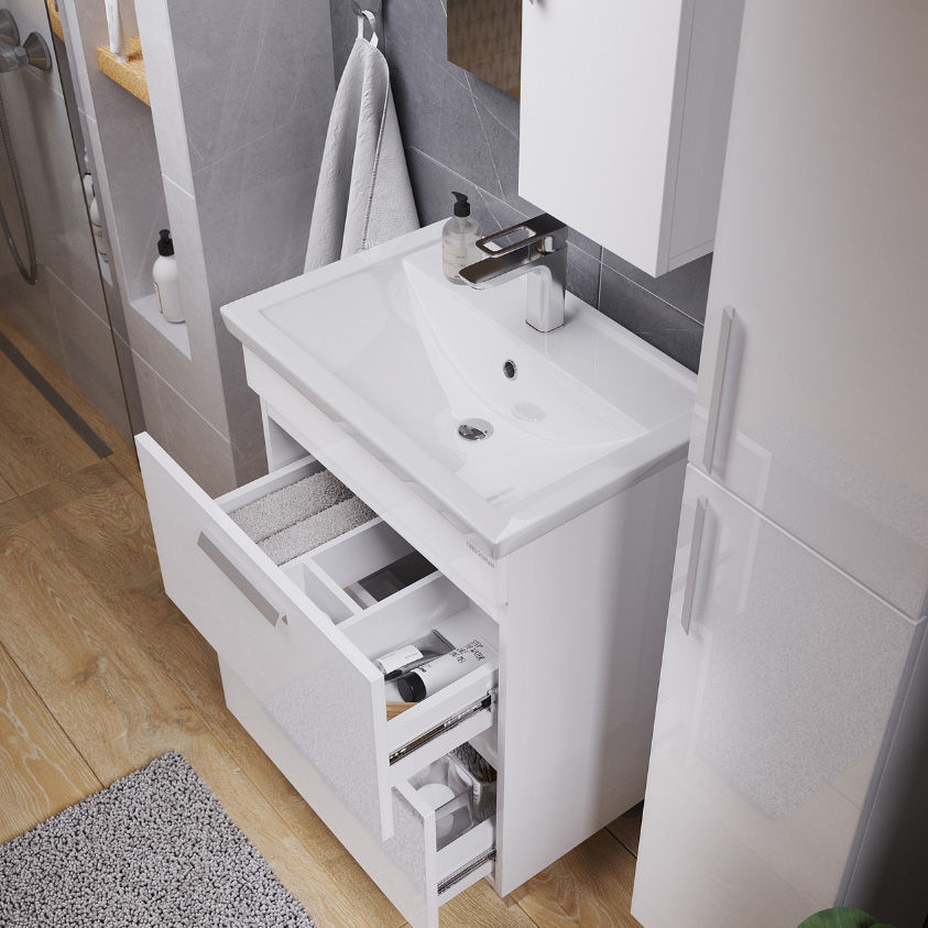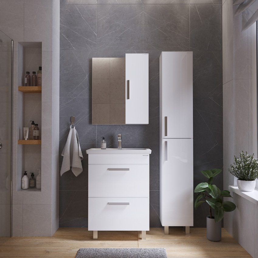 Тумба напольная под раковину с ящиками Grossman Нео 60 см (краска) белый 106028-1K