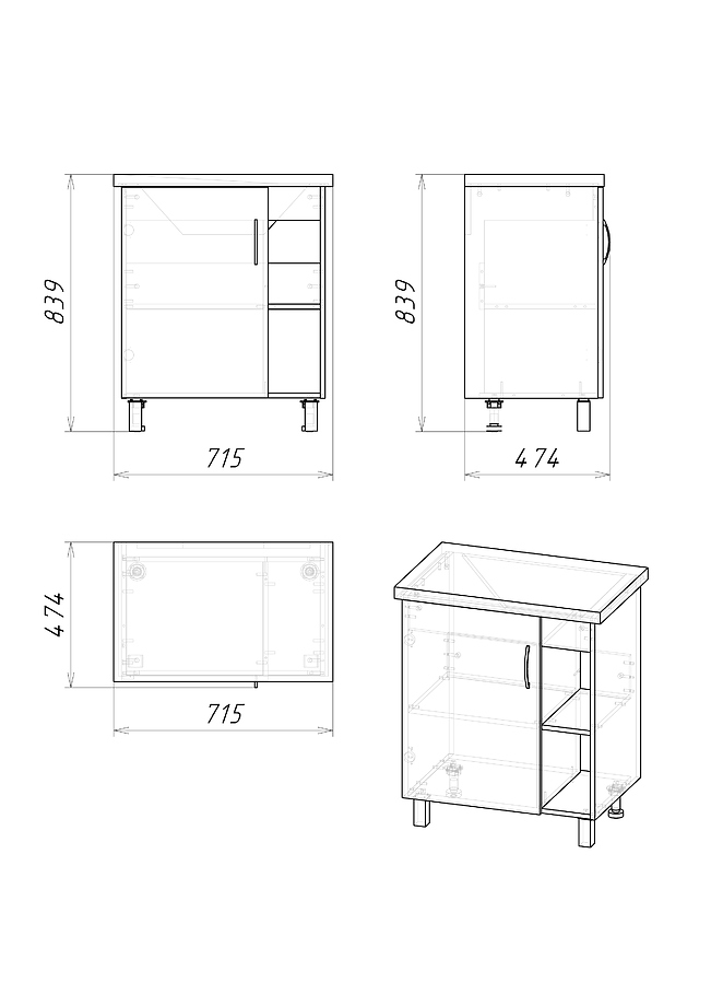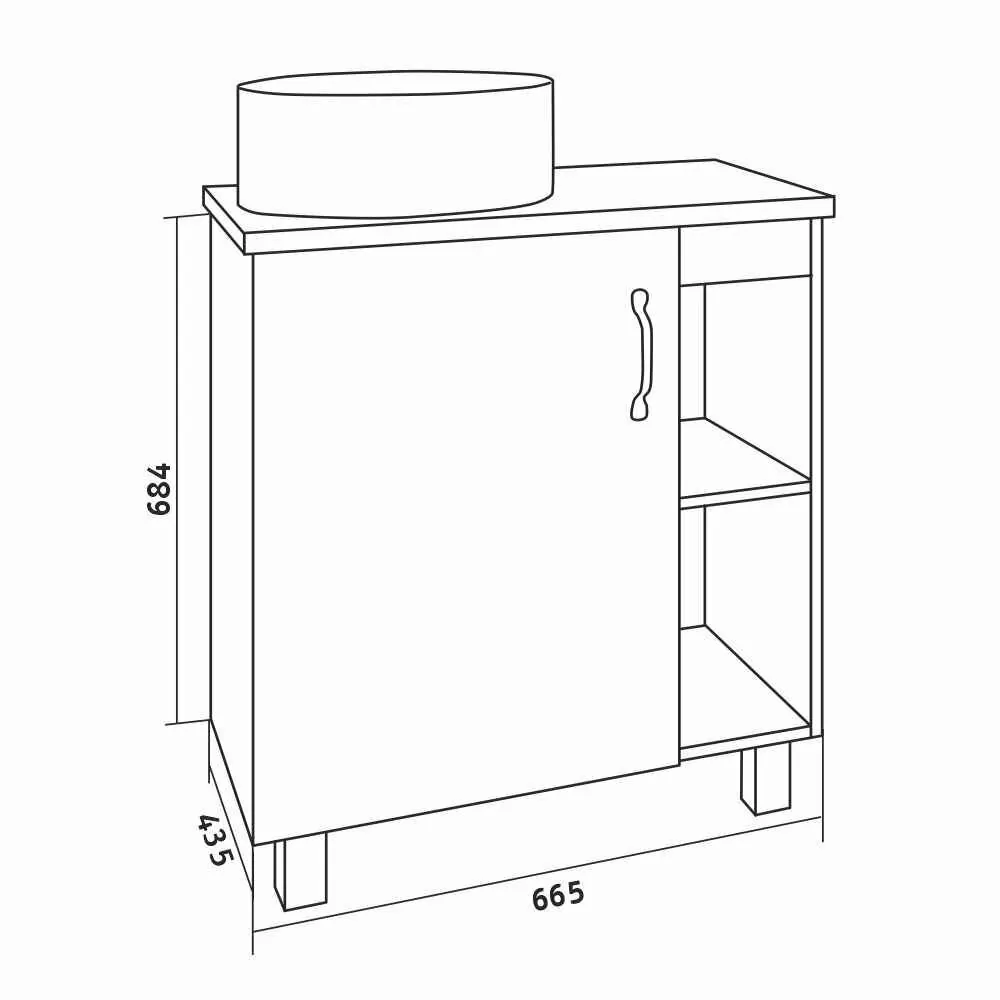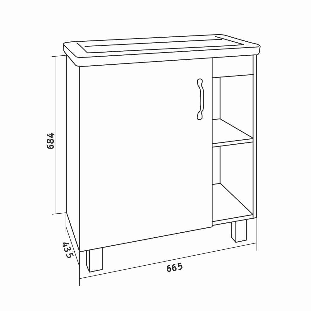 Корпус тумбы выполнен из ЛДСП, фасад - из МДФ в матовой пленке, перепадам температур и высокой влажности. Черная металлическая ручка и 4 ножки (2 декоративных черных и 2 пластиковых) идут в комплекте с тумбой.