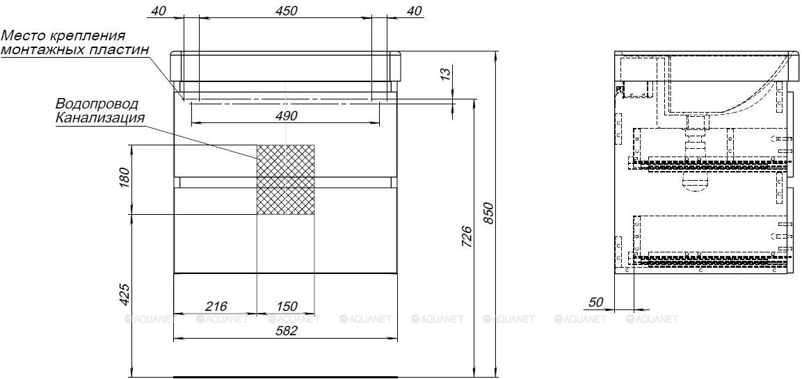 Тумба под раковину Aquanet Вега 2.0 без накладки 60 см черный 337953