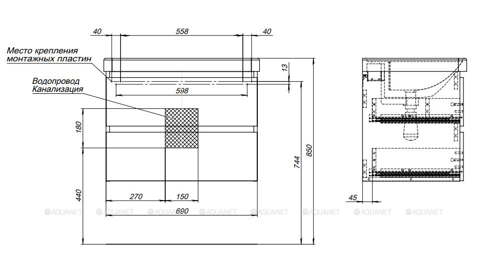 Тумба под раковину Aquanet Вега 70 см белый 308333