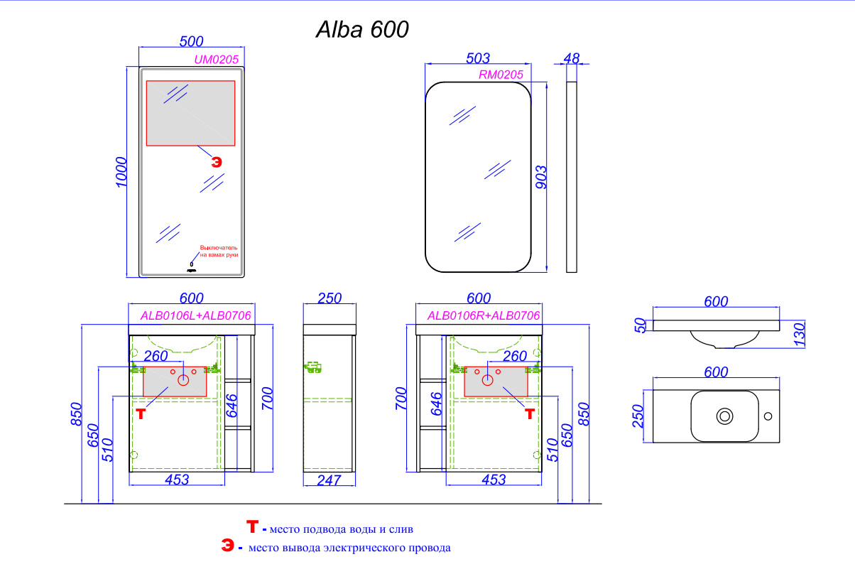 Тумба под раковину Aqwella Alba 60 см светлый камень (L) ALB0106LLS