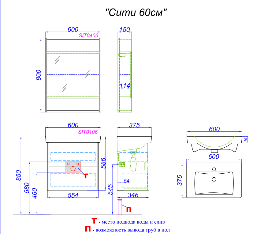 Раковина: Moduo slim 60 керамика/ приобретается отдельно