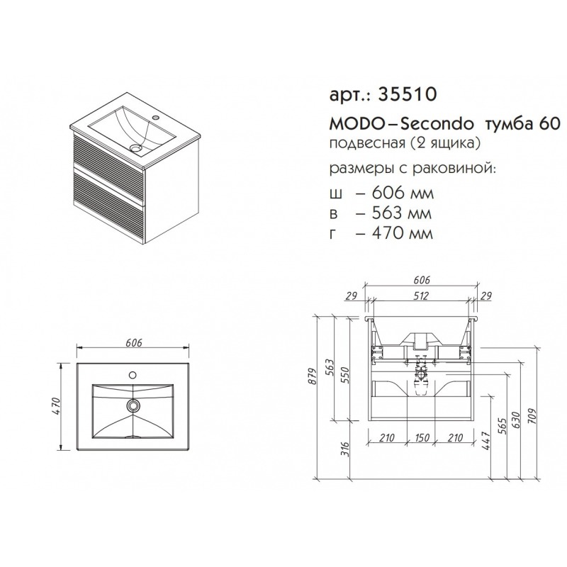 Тумба под раковину Caprigo MODO–Secondo 60 см 35510 цвета разные