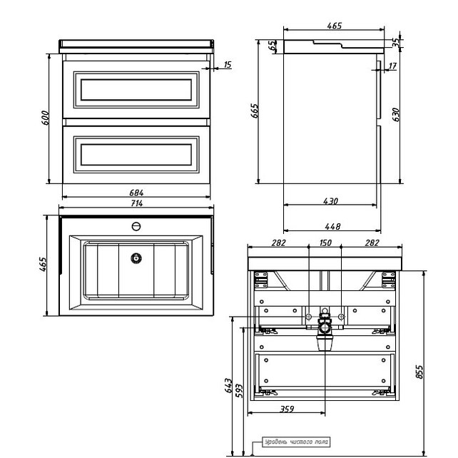 Тумба под раковину Caprigo WALES 70 см 2ящ 36011eml эмаль/ цвета разные