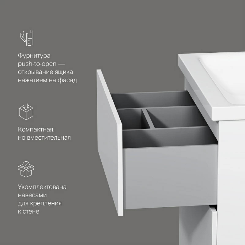 | Оснащение | Фурнитура push-to-open/ мягкое открывание-закрывание |