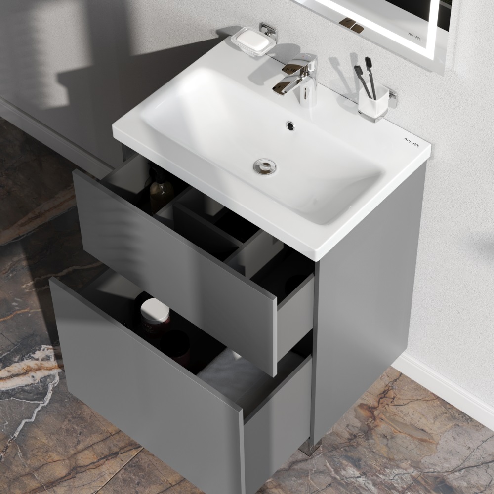 Тумба под раковину подвесная AM.PM Gem 60 см 2ящ графит матовый M90FHX06022GM