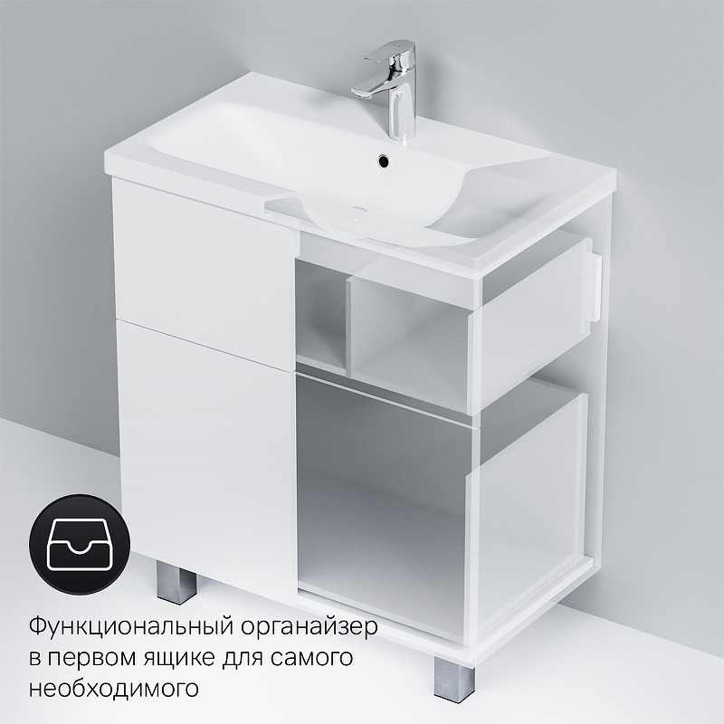 - Тумба под раковину напольная AM.PM Gem 75 см 2ящ белый глянец M90FSX07522WG32