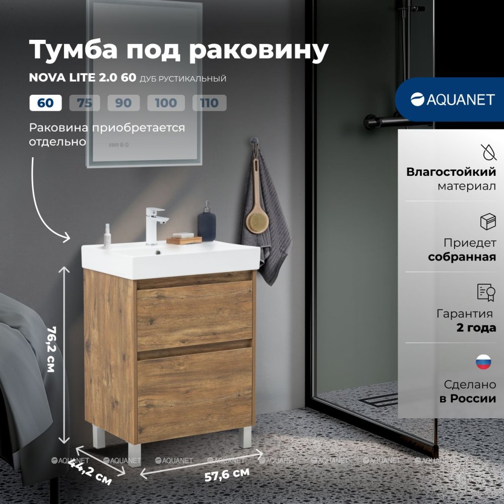 Тумба под раковину напольная Aquanet Nova Lite 2.0 60 см (Латина) дуб рустикальный 346343