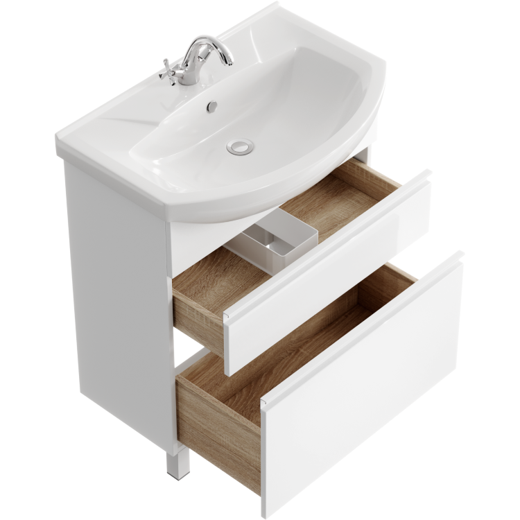 Оснащение: 2 ящика, направляющие скрытого монтажа, с плавным скольжением и мягким закрыванием