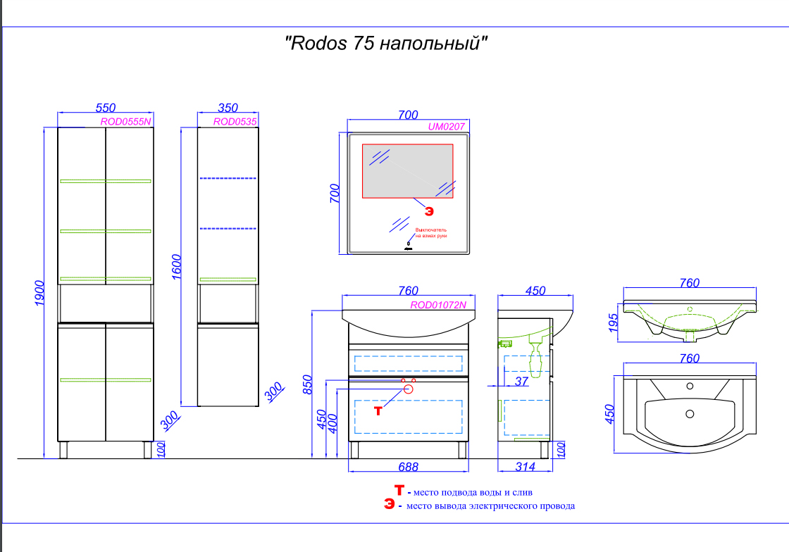 Тумба под раковину напольная Aqwella Rodos 75 см ROD01072N