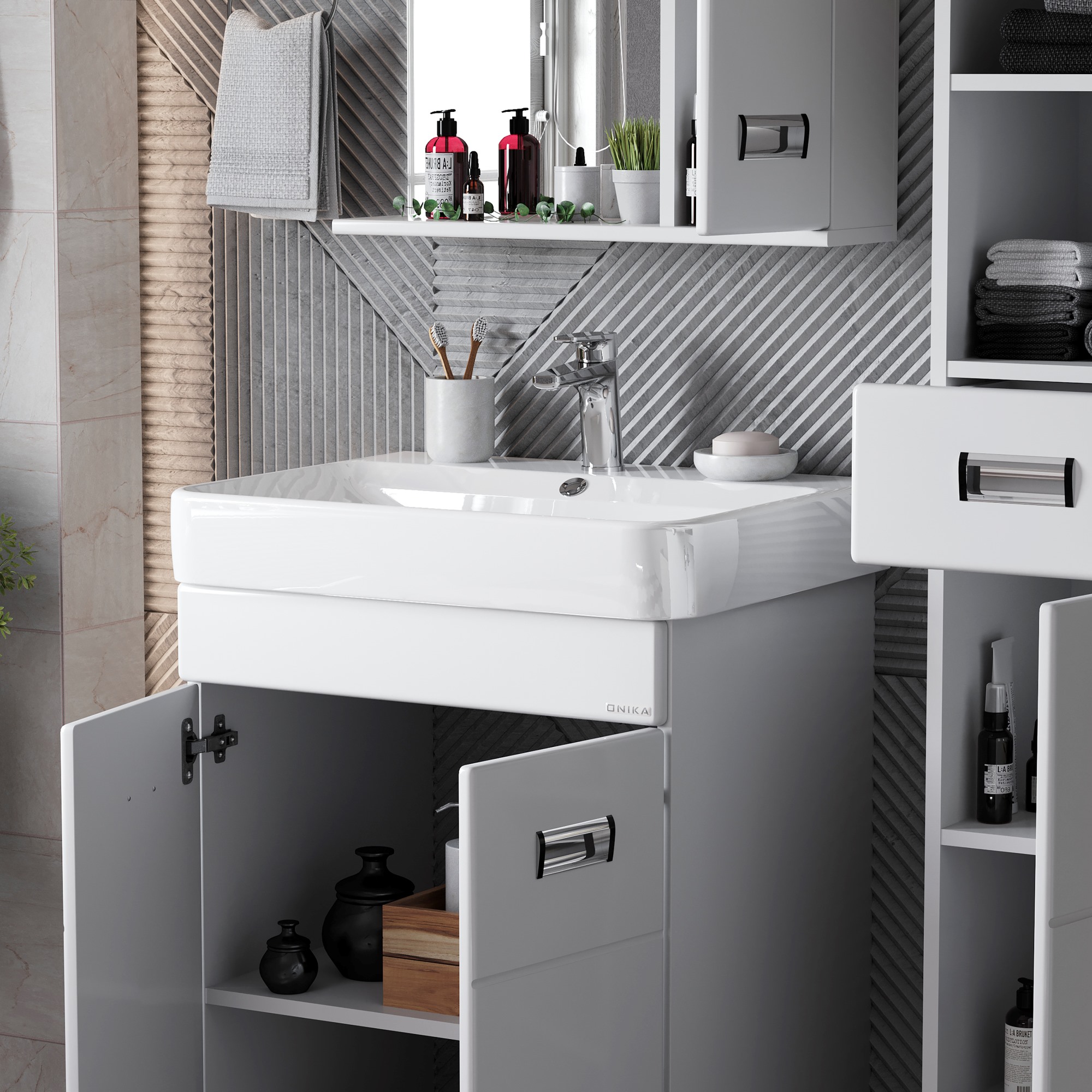 Напольная тумба для ванной комнаты Onika Балтика-Квадро 60 - это простые функциональные формы и яркий акцент в любом дизайне. Глянцевый белый цвет фасада, ненавязчивая горизонтальная фрезеровка, врезные хромированные ручки и аккуратная лаконичность - все это позволяет коллекции Балтика стать центральным звеном интерьера ванной комнаты. За распашными дверцами с системой плавного закрывания расположено вместительное отделение, разделенное на две части горизонтальной полочкой, которое станет удобным местом для хранения различных бытовых принадлежностей. Корпус тумбы выполнен из ЛДСП, фасад - из ЛМДФ в пленке, устойчивых к механическим воздействиям, перепадам температур и высокой влажности. 4 ножки (2 декоративных и 2 пластиковых) с регулировкой по высоте идут в комплекте с тумбой.