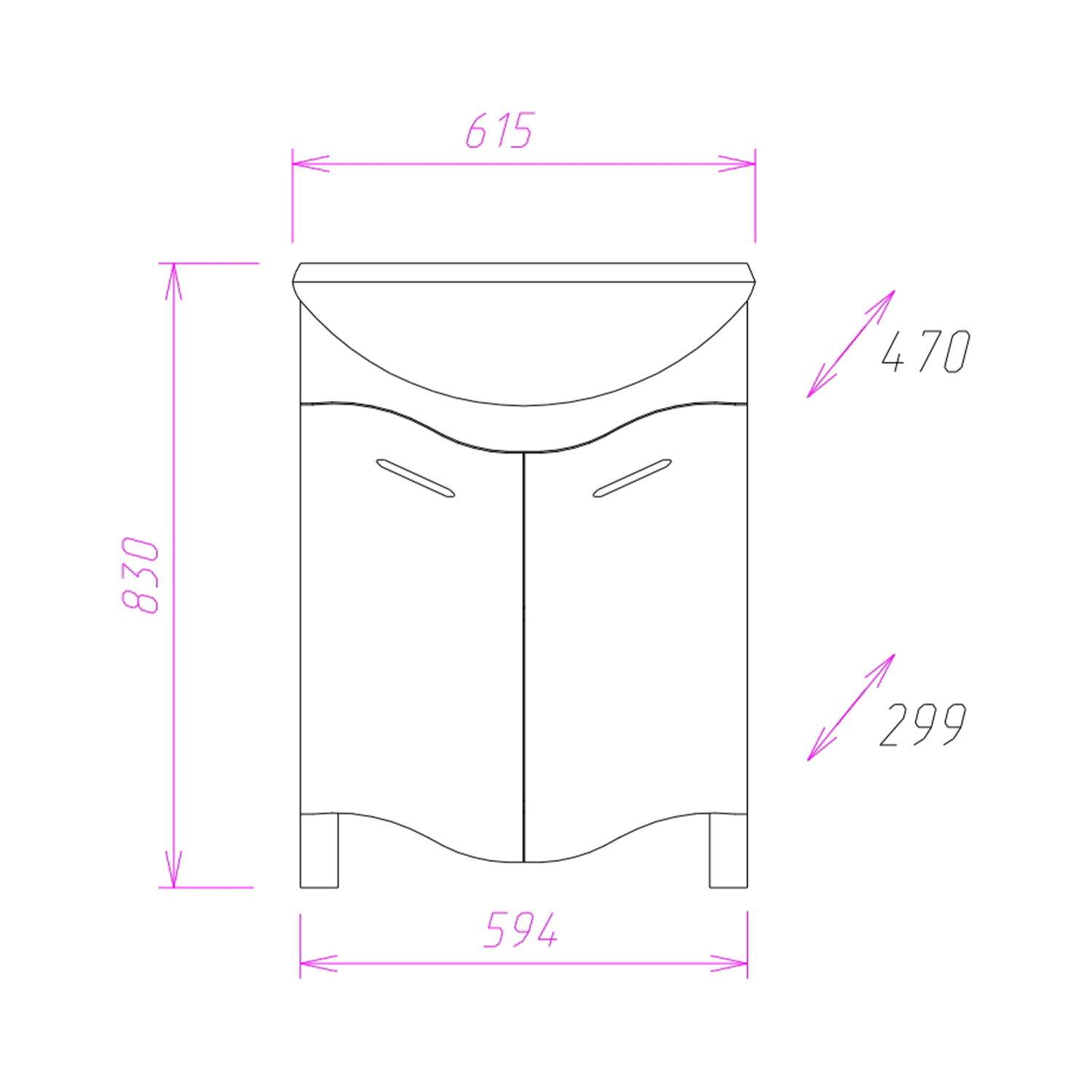 Тумба под раковину напольная Onika Лайн 60 см (Rosa Уют) белый 106043