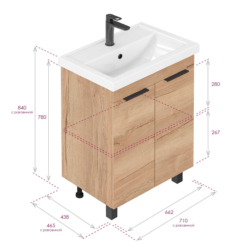 Тумба под раковину напольная Onika Легран 70 см (Кirovit Фостер) дуб галифакс 107067