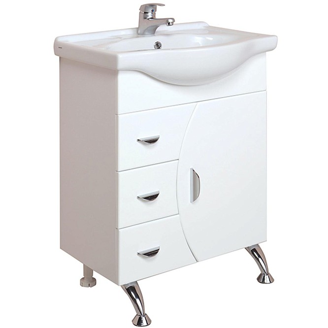 Напольная тумба для ванной комнаты Onika Луна 60 - одна из самых удобных моделей. Эстетика тумбы представлена белоснежным глянцевым фасадом и оригинальной удобной хромированной фурнитурой, а функционал - большим пространством для хранения. Вместительное отделение за распашной дверцей позволяет хранить в тумбе все необходимые крупные вещи, а 3 выдвижных ящика отвечают за комфортное размещение всех мелочей. Ящики тумбы оснащены направляющими полного выдвижения, а дверца снабжена системой плавного закрывания. Корпус тумбы выполнен из ЛДСП, фасад - из ЛМДФ в пленке, устойчивых к механическим воздействиям, перепадам температур и высокой влажности. Четыре хромированных ручки и четыре ножки (2 декоративных хромированных и 2 пластиковых) идут в комплекте с тумбой.