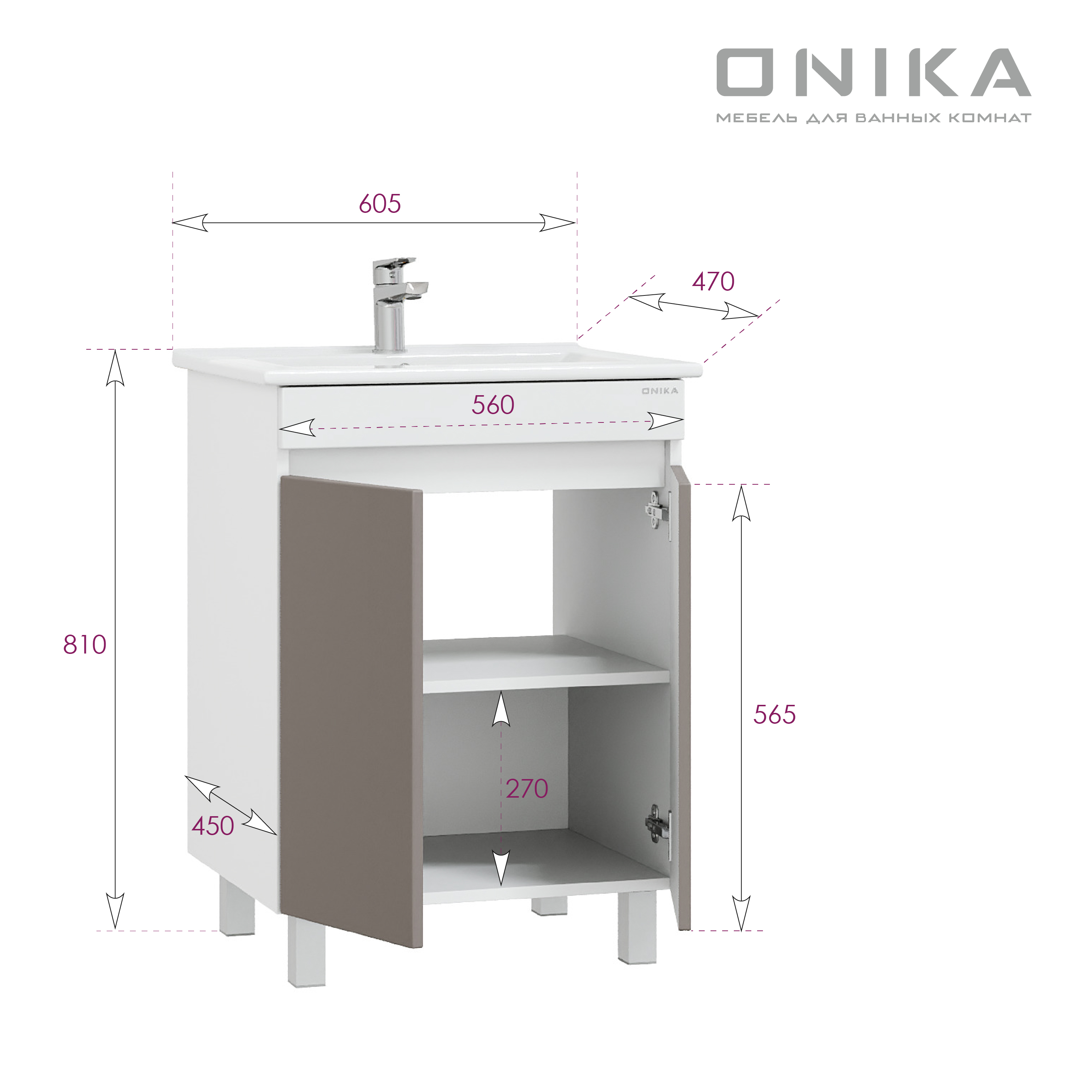 Тумба под раковину напольная Onika Марви 60 см (Santek Элина) мокко 106152