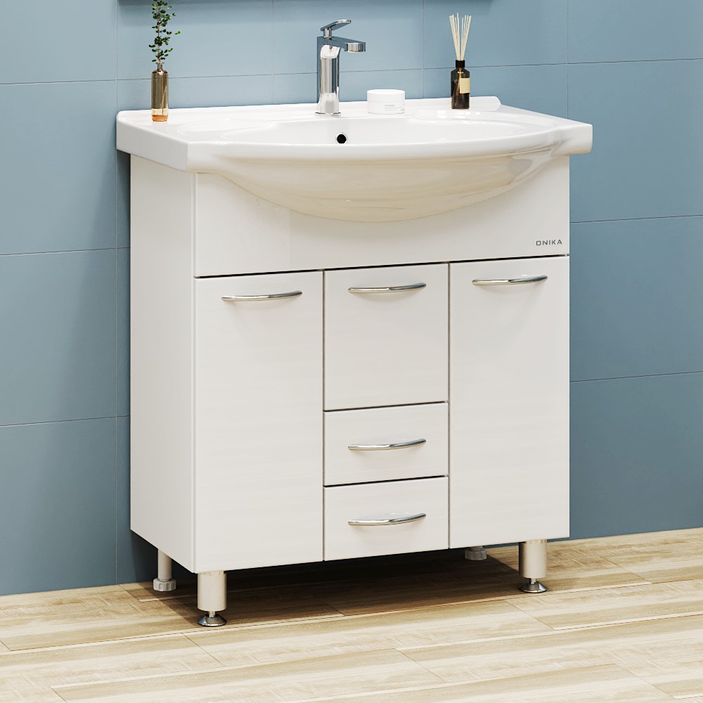 Тумба под раковину напольная Onika Моника 75 см (Santek Байкал) белый 107501
