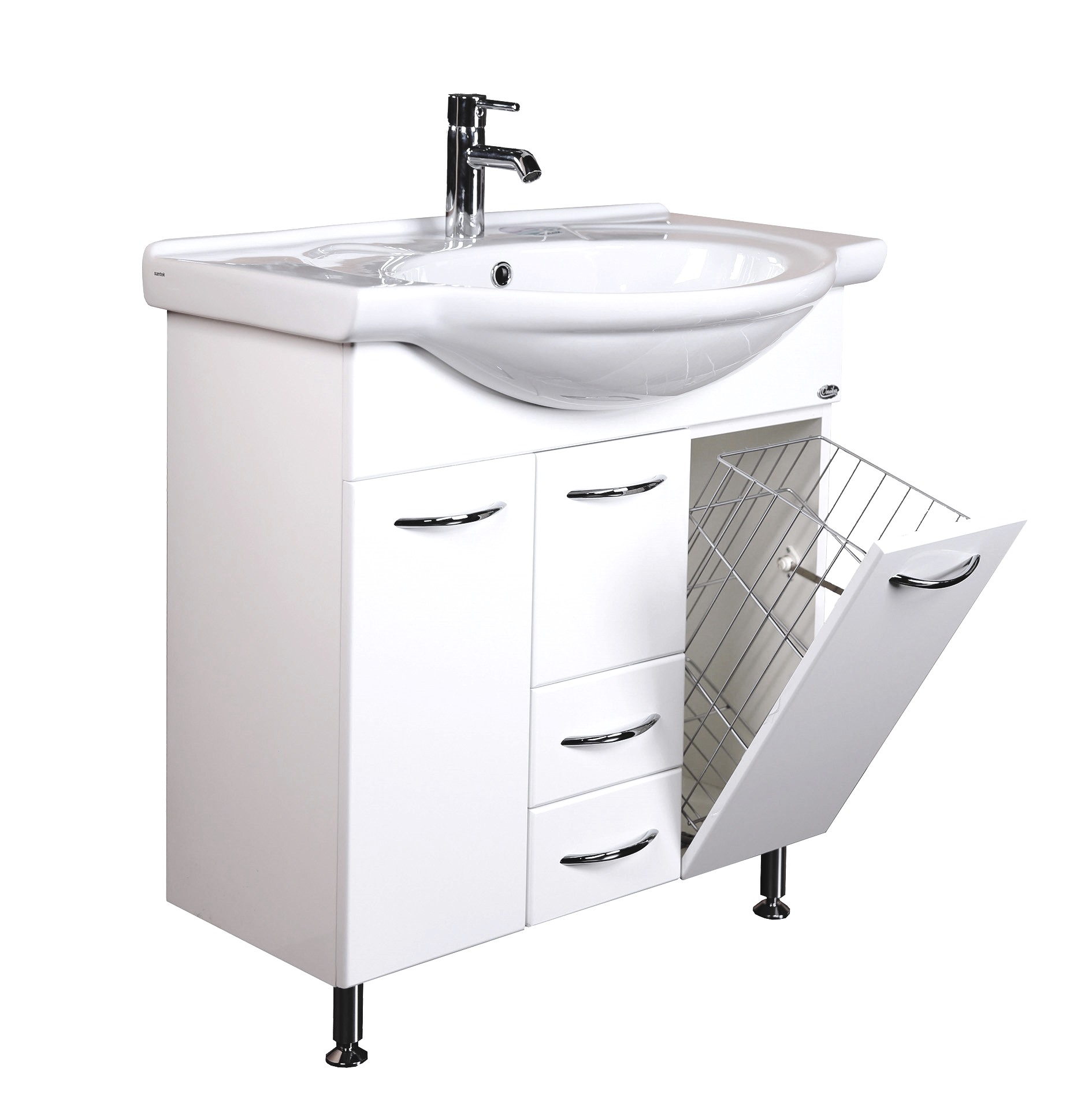 Тумба под раковину напольная с корзиной Onika Моника 75 см (Santek Байкал) белый 107502