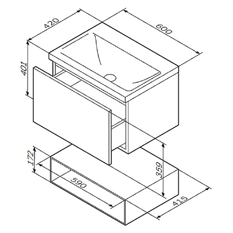 | Раковина | Керамика белый/ черный, приобретается отдельно |