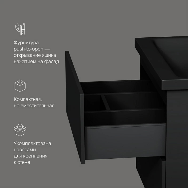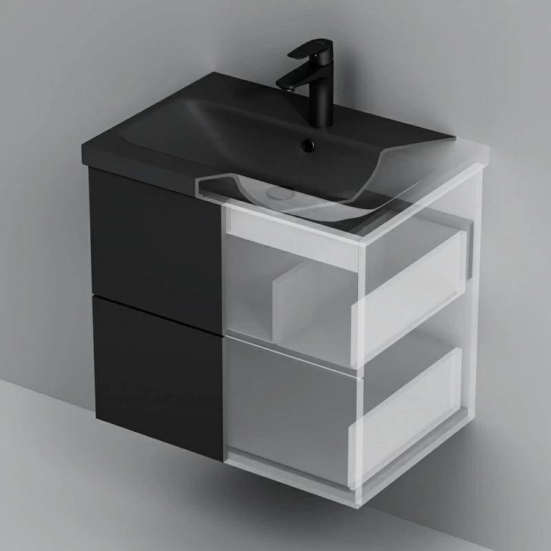 Тумба под раковину подвесная AM.PM Gem 60 см 2ящ черный матовый M90FHX06022BM
