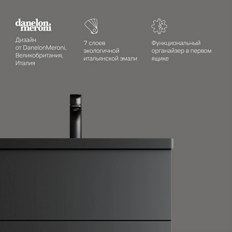 - Тумба под раковину подвесная AM.PM Gem 75 см 2ящ черный матовый M90FHX07522BM