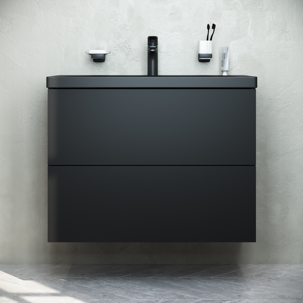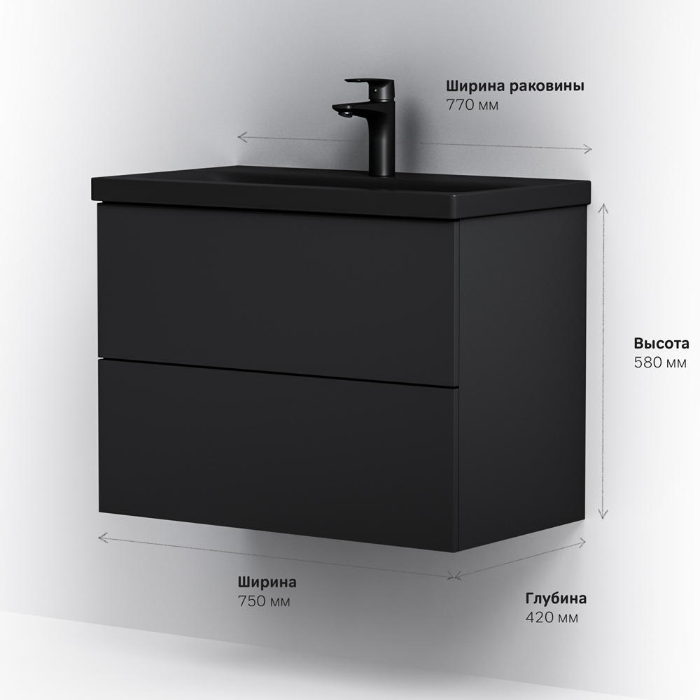 Тумба под раковину подвесная AM.PM Gem 75 см 2ящ черный матовый M90FHX07522BM