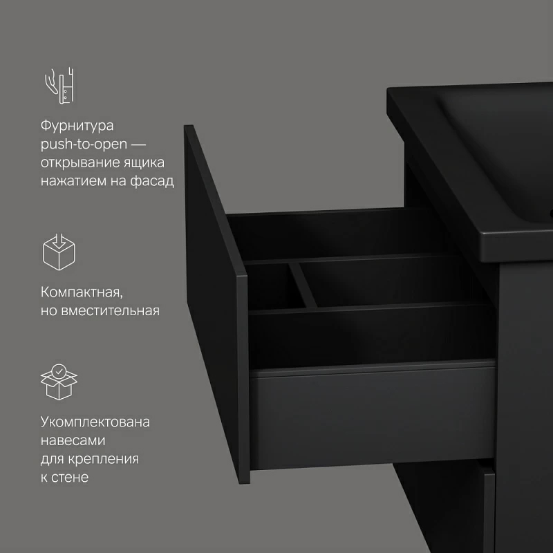 Тумба под раковину подвесная AM.PM Gem 60 см 2ящ черный матовый M90FHX06022BM