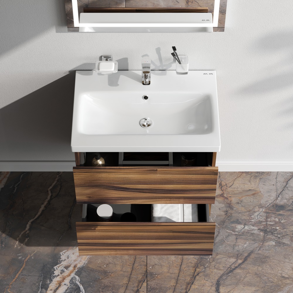 - Тумба под раковину подвесная AM.PM Gem 75 см 2ящ орех M90FHX0752HF
