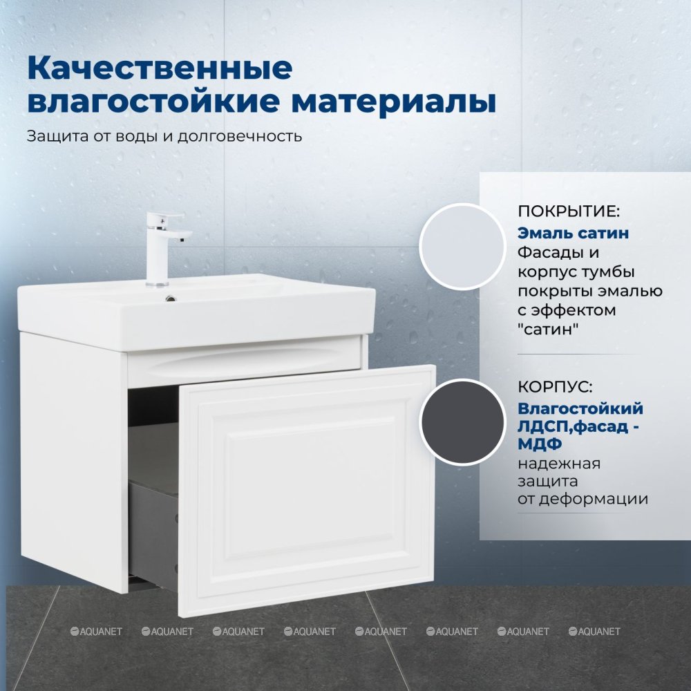 Тумба под раковину подвесная Aquanet Агата 60 см (Латина) белый сатин 345480