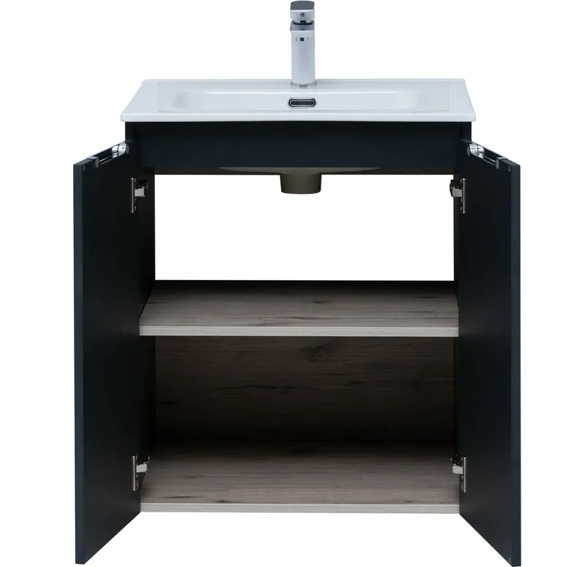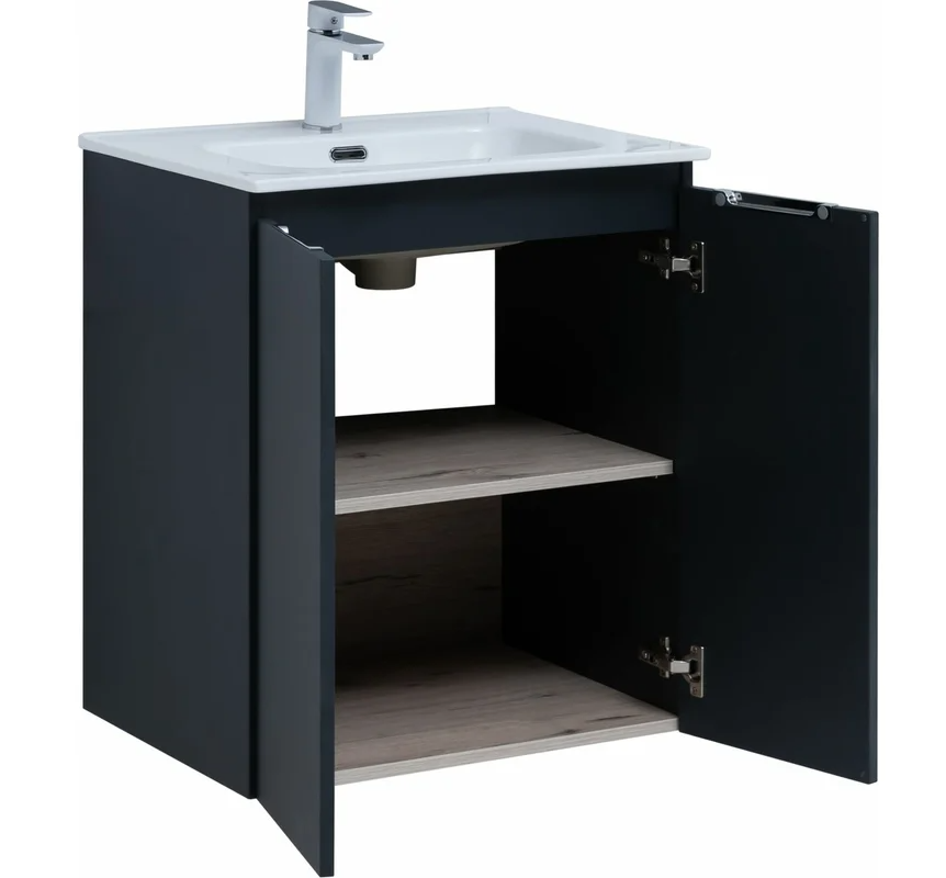 Тумба под раковину подвесная Aquanet Алвита NEW 60 см 2 дв антрацит матовый 277523