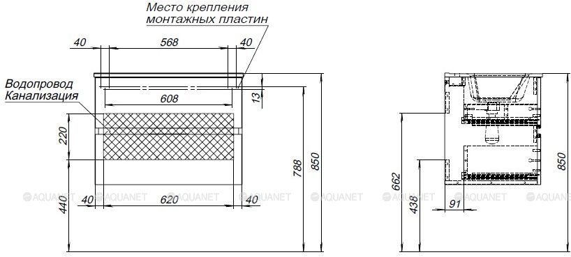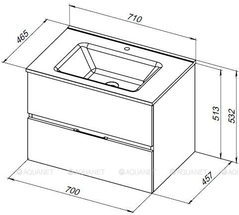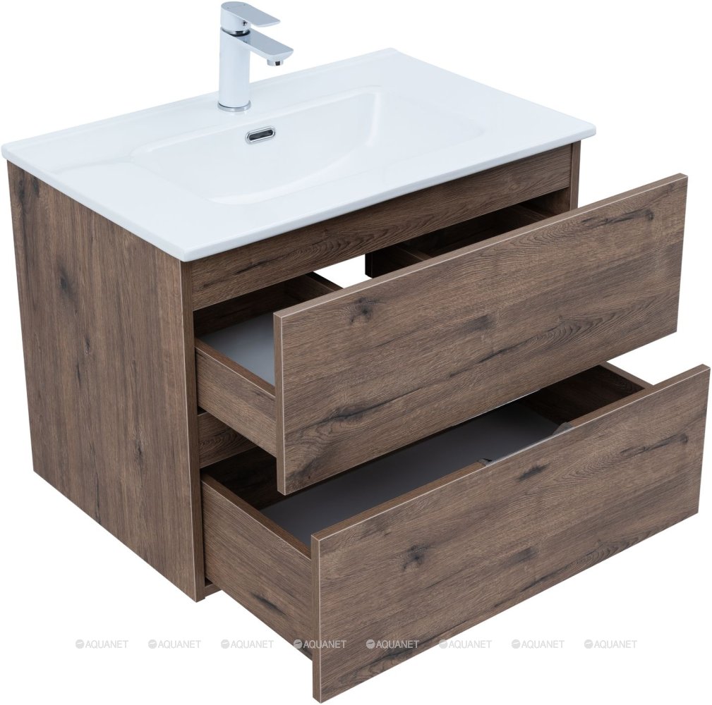 Тумба под раковину подвесная Aquanet Алвита NEW 70 см 2 ящ дуб веллингтон табак 334185