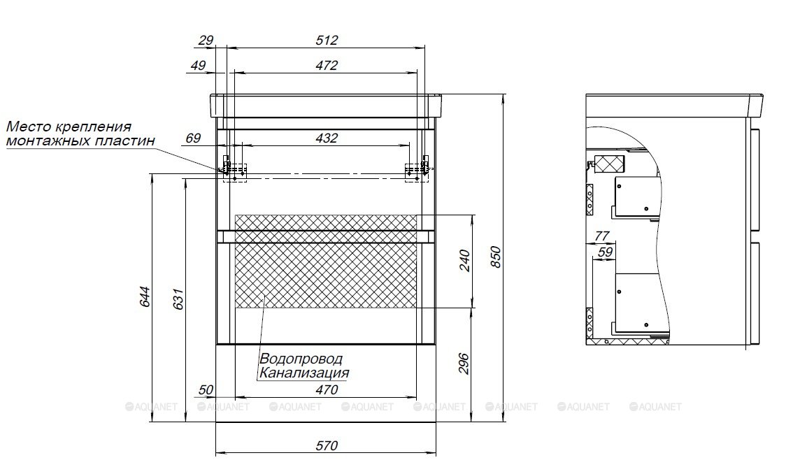 - Внутренние детали - влагостойкая ЛДСП, цвет белый.