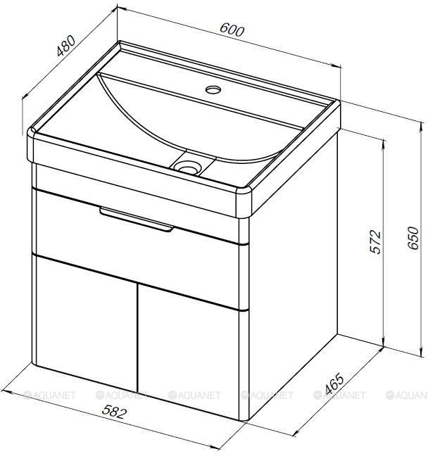 Тумба под раковину подвесная Aquanet Ирис NEW 60 см (1ящ+2дв) белый глянец 310148