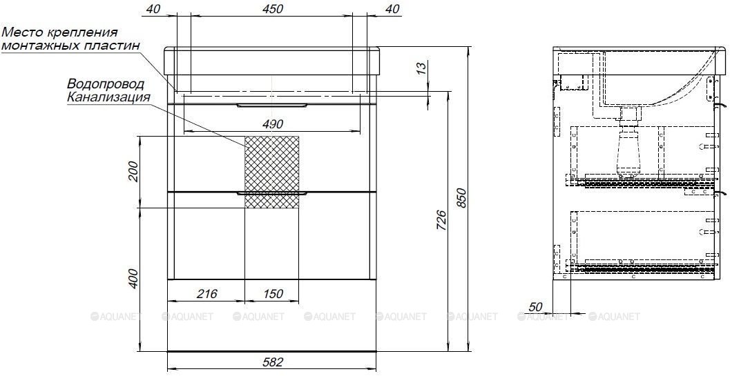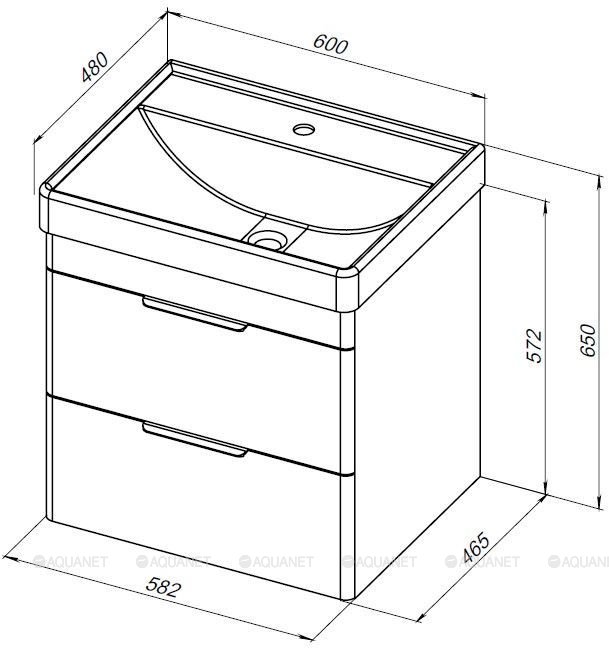 Тумба под раковину подвесная Aquanet Ирис NEW 60 см (2ящ) белый глянец 310144