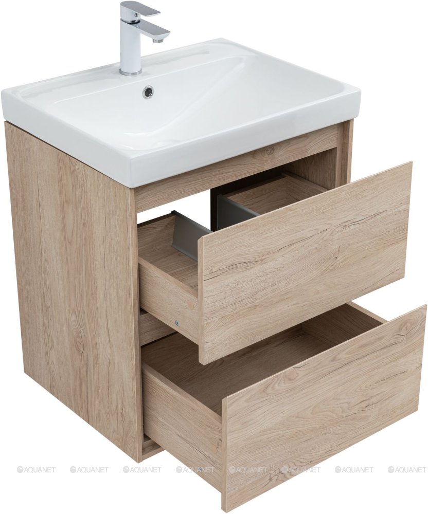 Тумба под раковину подвесная Aquanet Милан 60 см дуб светлый 336382