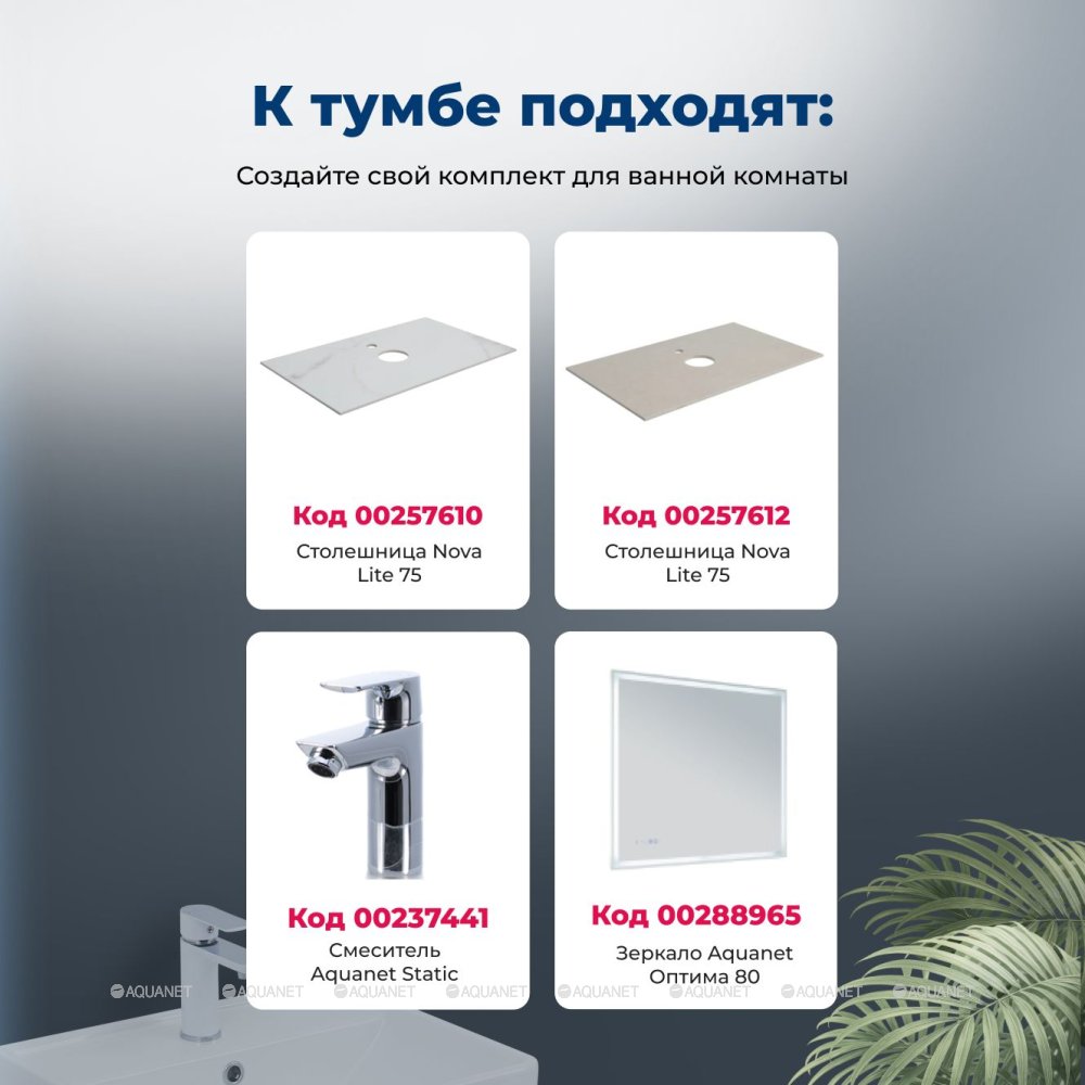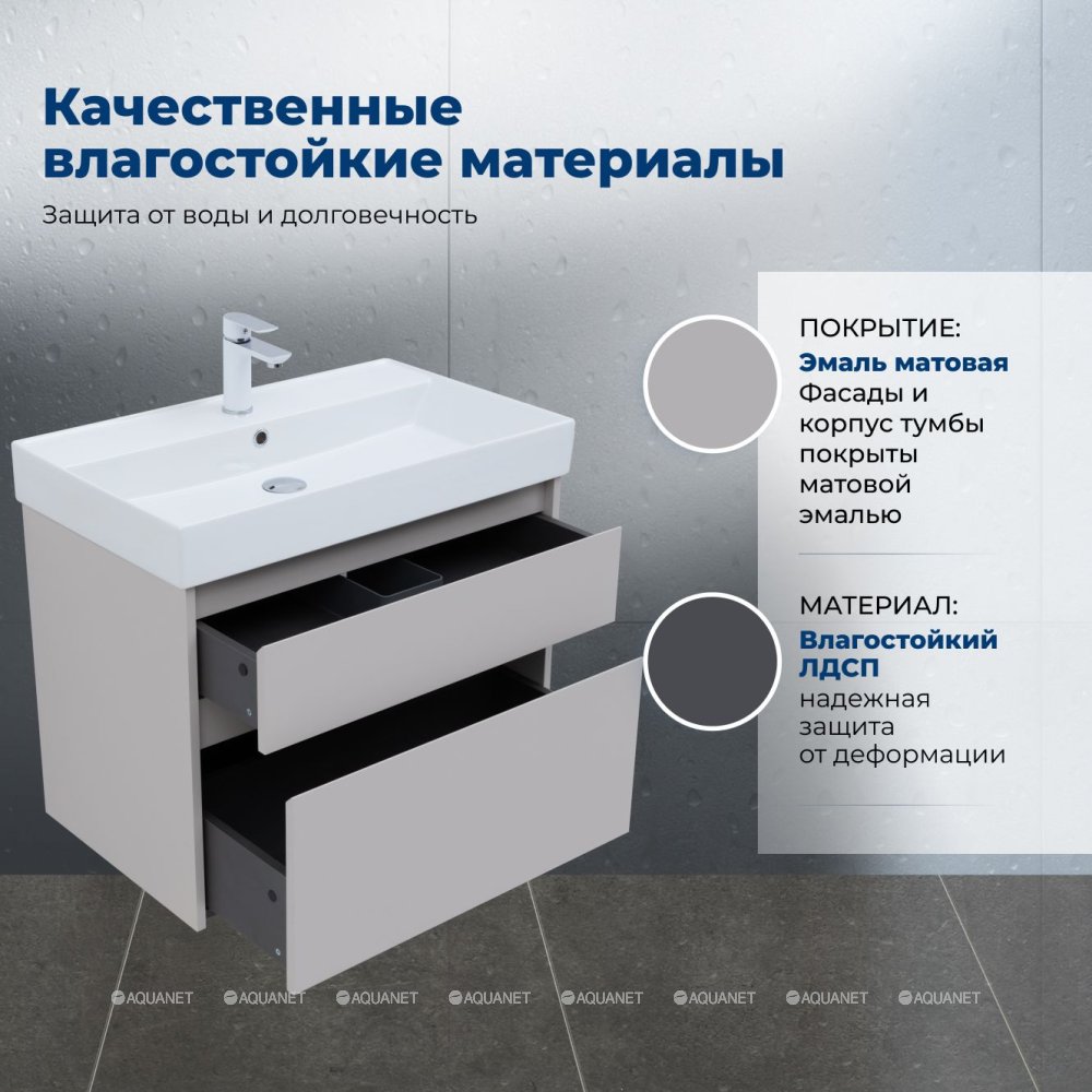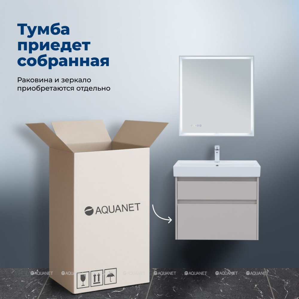 Тумба под раковину подвесная Aquanet Nova Lite 2.0 75 см (Латина) бежевый 346323