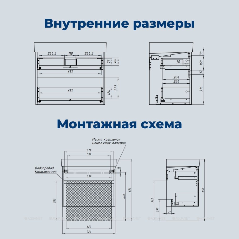 - Возможность установки на регулируемые опоры (высота – 200 мм) для удобного монтажа.